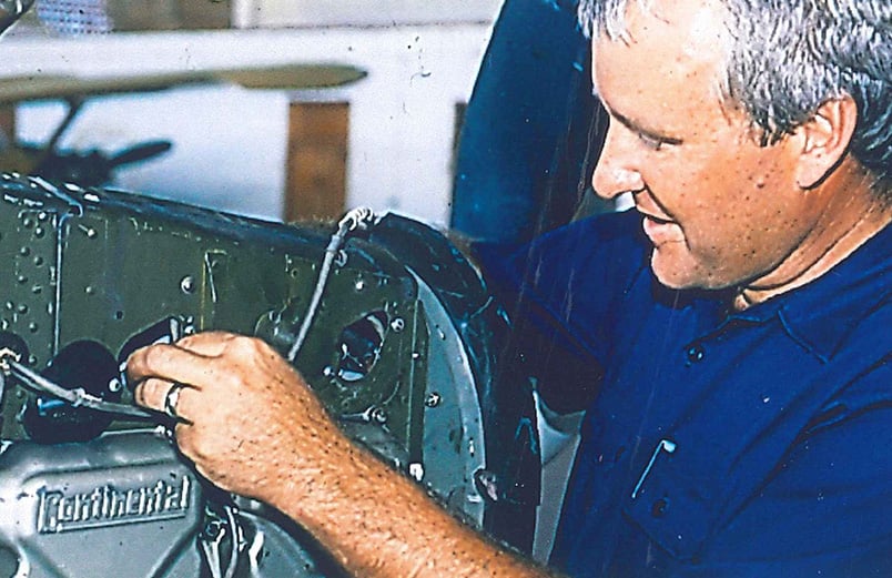Daudi Strong working on one of many planes he serviced